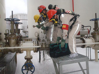 应急基地专业堵漏队对现场气体检测和实施堵漏