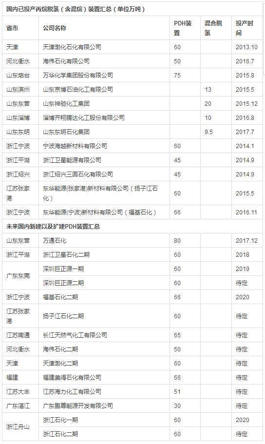 近年来,丙烷脱氢工艺在中国迅速发展,产能扩张速度惊人,逐渐成为丙烯重要来源之一。自2013年10月,随着天津渤化60万吨/年的丙烷脱氢装置投产运行,丙烷脱氢装置在国内正式拉开序幕。此后的几年里,丙烷脱氢装置在国内遍地开花,迅速发展,主要集中在华东的江浙地区、华北地区以及山东地区,而且近两三年混合烷烃脱氢这种更加灵活的装置在山东地区陆续投产运行。至今,国内丙烷脱氢(含混烷)制丙烯总产能达到513.5万吨。但是从下表可以看出,华南地区尚无丙烷脱氢装置,深圳williamhill英国官网丙烷脱氢装置建成后,将填补华南地区丙烷脱氢制高性能聚丙烯及下游加工项目的空缺,给当地化工企业提供优质的化工原料。